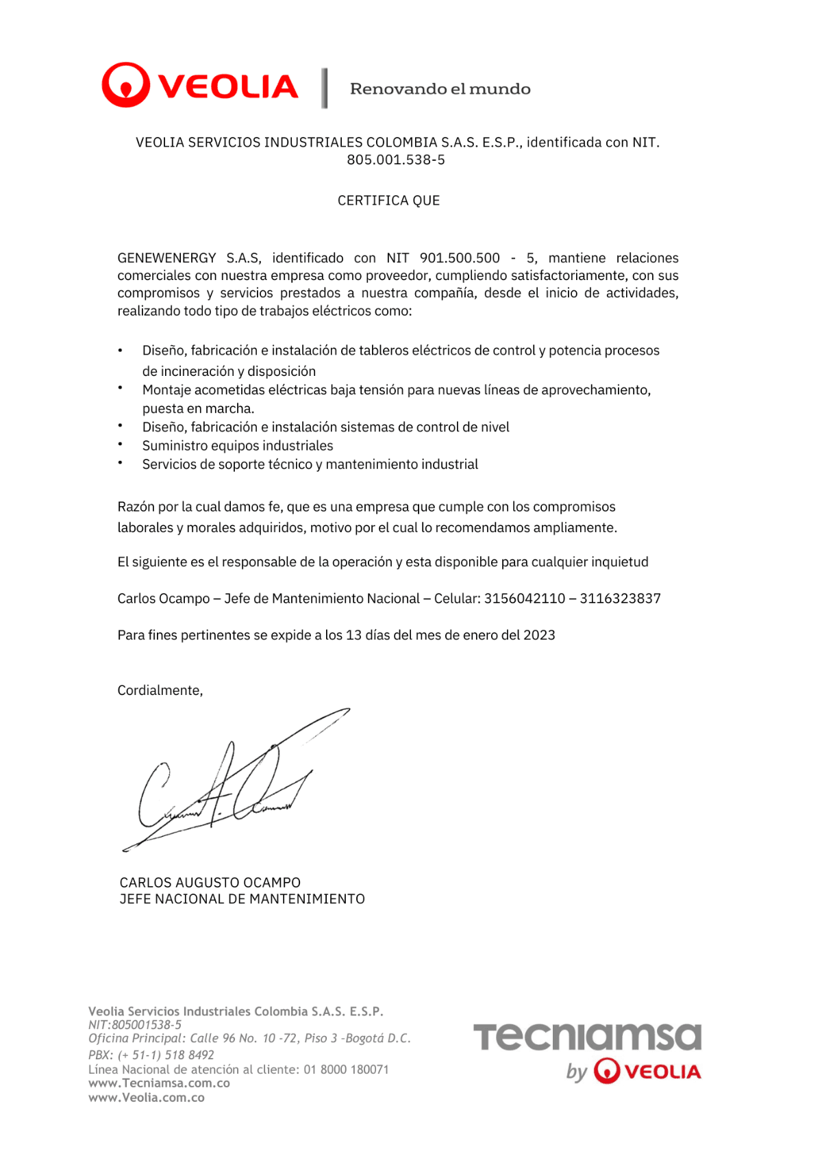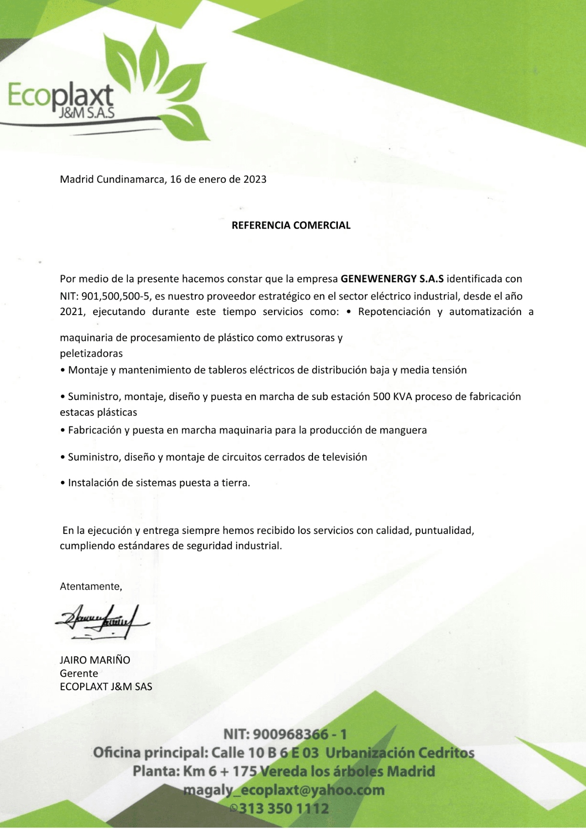 En GENEWENERGY S.A.S, somos líderes en soluciones industriales desde 2021. Ofrecemos servicios de mantenimiento y montajes eléctricos, garantizando calidad y seguridad en cada proyecto.